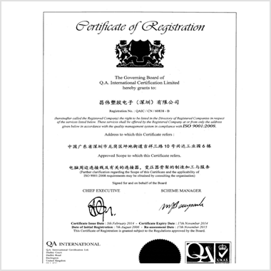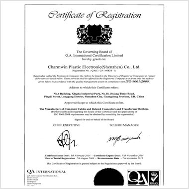 同年獲得UL: E144421的證書且於2006年獲得ISO 9001認證,目前推行環保產品,落實產品通過 RoHS、REACH 規範。我司承諾並持續不斷地改善,以提供最好之品質、交期與服務給客戶。
